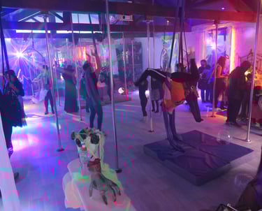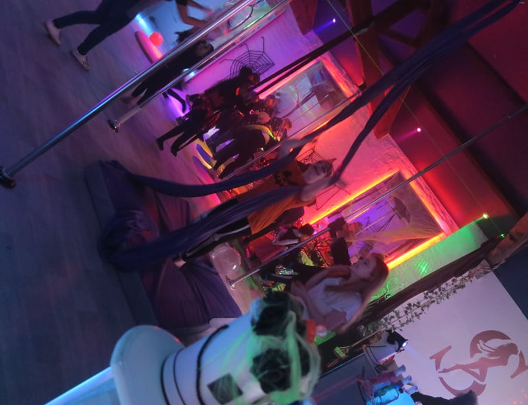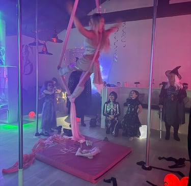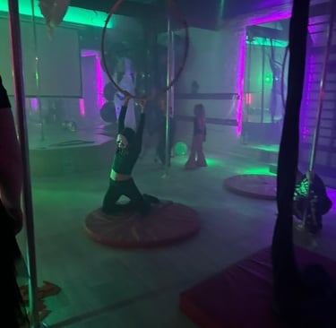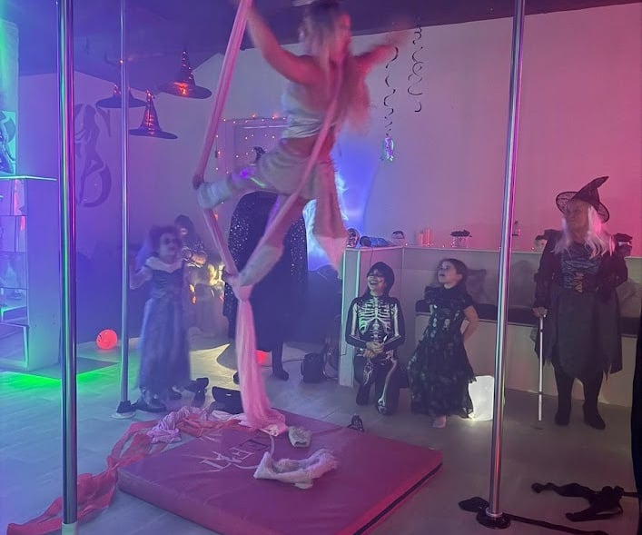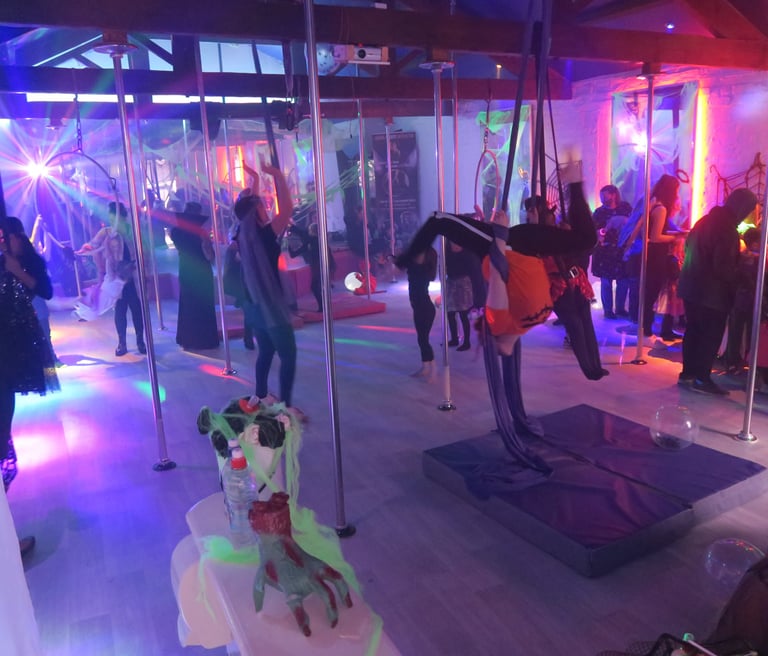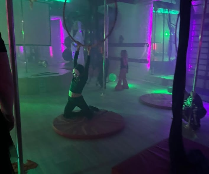 Enjoy games, disco, hoops, and aerial silks.