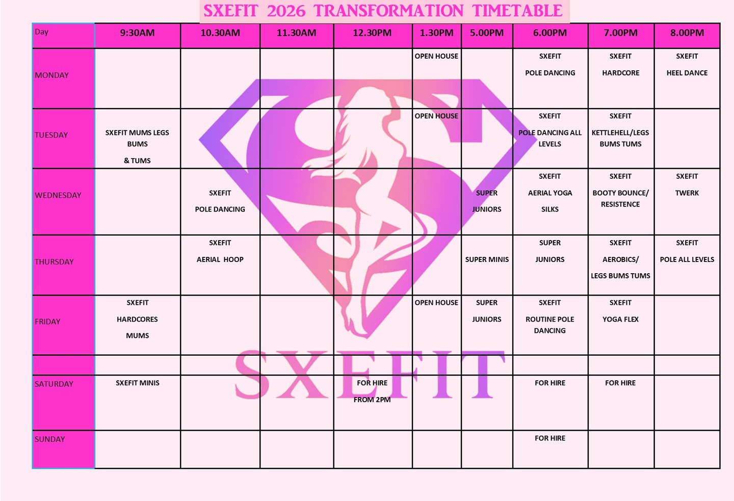 SXEFIT TIMETABLE